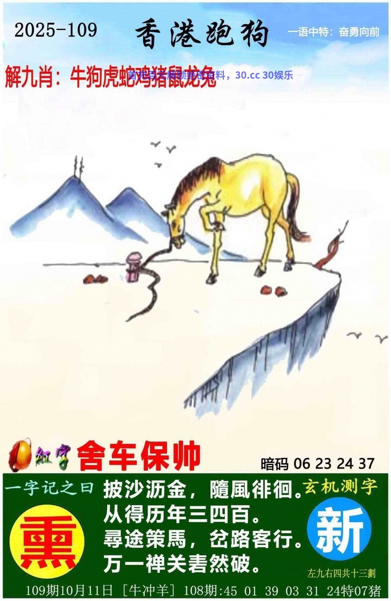 109期 猴羊鸡兔牛马蛇狗 开:猪07