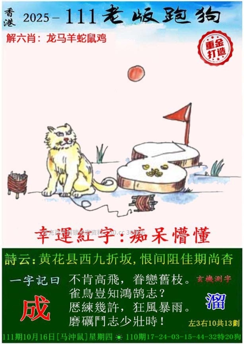 110期 猪鸡牛鼠马龙蛇兔虎 开:狗20